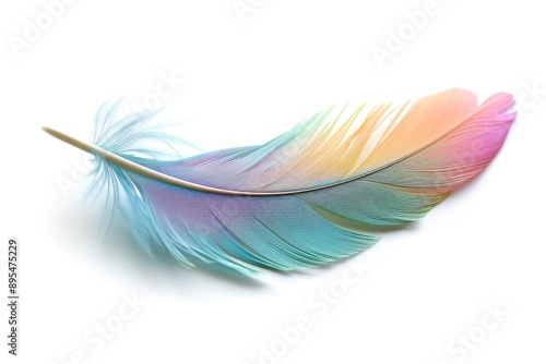 Detailed 3d illustration of colorful exotic bird feather against white background