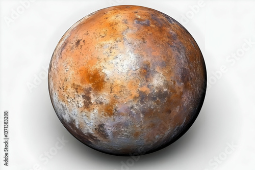 Detailed 3D Render Of An Aged And Rough Planet With Orange And Brown Textures on White Background