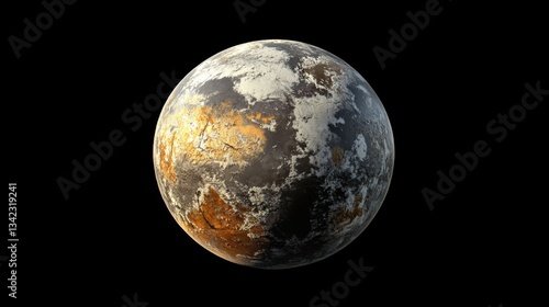 Detailed 3D Render of an Alien Planet Landscape with Diverse Terrain, Colorful Atmosphere, and Unique Surface Features for Science and Fantasy Applications