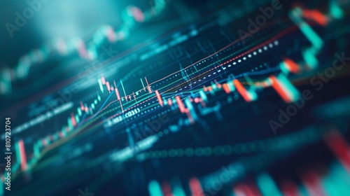 Detailed analysis display: investment trading metrics and trends on stock exchange market monitor - In-depth financial data visualization