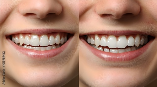 Detailed before-and-after comparison of a patient's smile symmetry, showcasing alignment and bite improvement after orthodontic treatment