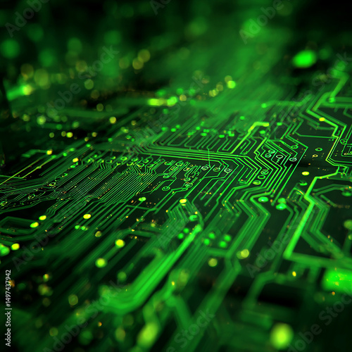 Detailed circuit board background with intricate electronic pathways and components. Perfect for technology themes, digital interfaces, hardware visuals, and innovation-focused designs.