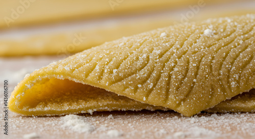 Detailed Close Up Of Uncooked Garganelli Pasta Covered In Flour
