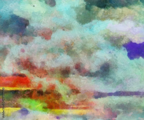 Detailed close-up grunge multi color abstract background. Dry brush strokes hand drawn oil painting on canvas texture. Creative simple pattern for graphic work, web design or wallpaper.