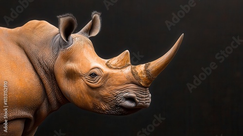 Detailed closeup of a black rhinoceros, showcasing the rough texture of its horn and the deep wrinkles around its eyes
