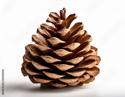 detailed closeup of a brown pine cone isolated on white background dry on white background