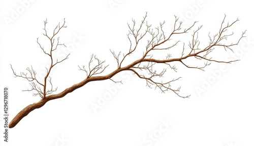 Detailed Closeup of a Brown Winter Tree Branch Isolated on White Background