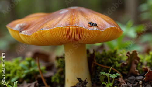 Detailed Close-up of a Mushroom in its Natural Habitat on Forest Floor