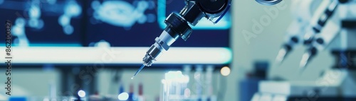 Detailed close-up of a robotic arm conducting a genetic experiment with precise movements and cutting-edge technology.