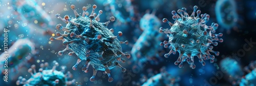 Detailed Closeup of Bacteria in Blue Background with Clean Lines and Depth