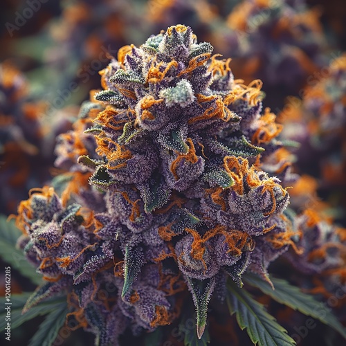 Detailed Close-Up of Cannabis Buds with Trichomes and Orange Pistils