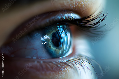 Detailed Close-Up of Eye and the Precise Moment of Inserting a Contact Lens