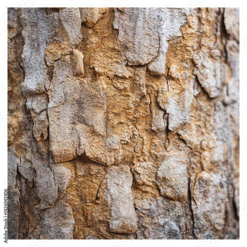 Detailed Close-Up of Textured Bark Surface of a Tree Trunk, isolated on transparent background.