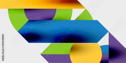 Detailed composition of circles, semicircles, and triangles with glossy effects and smooth gradients. A sleek and modern vector design for creative and tech-inspired projects