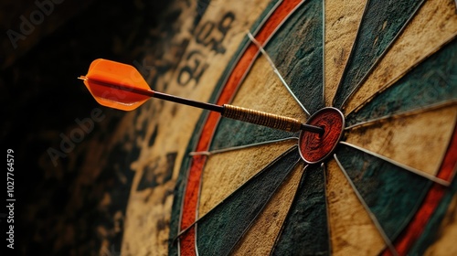 Detailed dartboard with a dart hitting the bullseye, showcasing achieving business targets