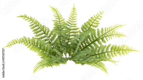 detailed fern frond, with a light, fresh green color, exhibiting intricate, delicate, and finely serrated fronds, against a pure white background.
