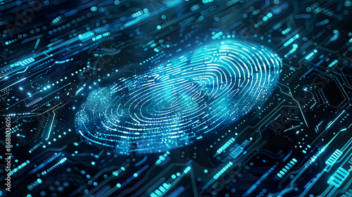 Detailed fingerprint for identity verification, intricate biometric patterns, futuristic design,