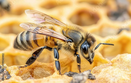 Detailed Honeybee on Honeycomb