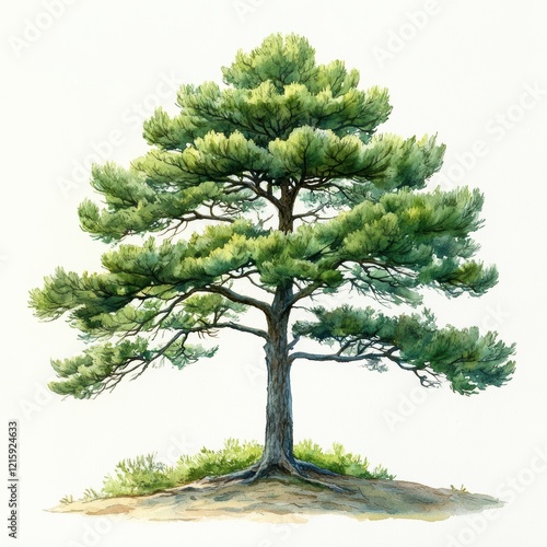 Detailed Illustration of a Green Pine Tree on a Plain Background