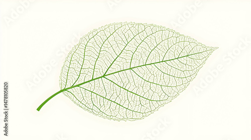 Detailed illustration of a light green leaf, veins clearly visible. The leaf is translucent, with a delicate structure and a pale green hue. It's presented against a plain white background