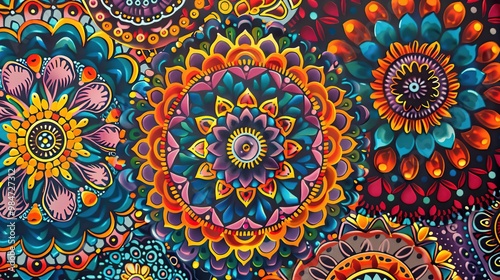 Detailed illustration of a mandala pattern with intricate details and vibrant colors