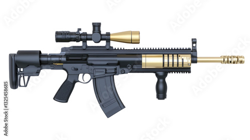 Detailed Illustration of a Modern Sporting Rifle with Scope and Adjustable Stock