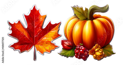Detailed Illustration of Autumn Leaf and Pumpkin Isolated on Transparent Background