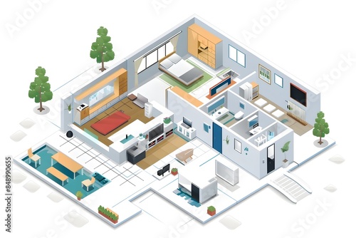Detailed isometric digital building plan showcasing available rooms and interior layout in a