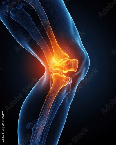 Detailed Knee Joint Anatomy Illustration Showing Bone Structure and Connective Tissue in Vivid Color