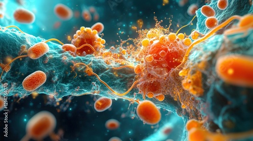 Detailed Microscopic View of Cellular Structure Illustrating Intricate Biological Processes Including Organelle Activity, Cytoplasmic Environment, and Intercellular Interactions