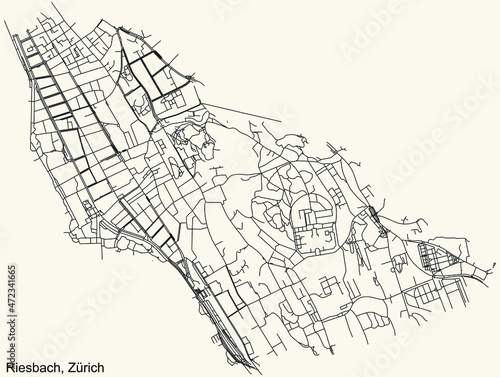 Detailed navigation urban street roads map on vintage beige background of the quarter Kreis 8 Riesbach District of the Swiss regional capital city of Zurich, Switzerland