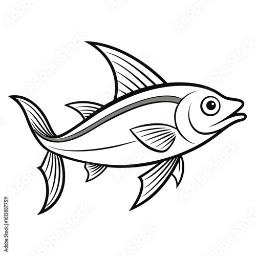 Detailed outline illustration of a ribbonfish gracefully swimming isolated on white background for versatile design applications