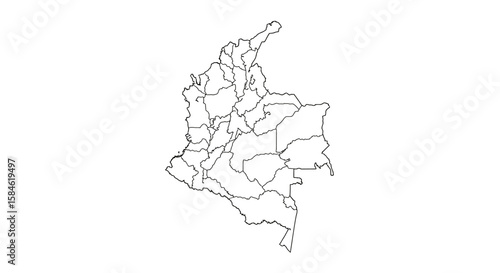 Detailed Outline Map of Colombia Showing its Departments for Cartographic Projects and Educational Purposes