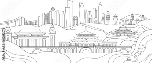 Detailed Pyongyang Skyline Vector Illustration A Captivating Outline of North Korea's Capital City