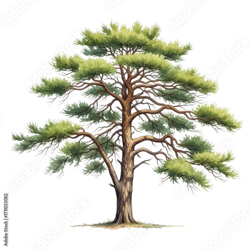 Detailed realistic pine tree with lush green foliage and textured bark isolated