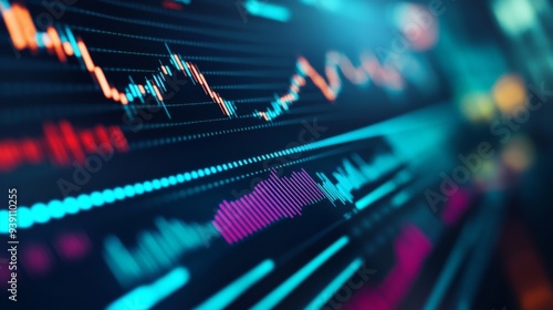 Detailed shot of a stock price graph with moving averages and volume indicators, on a financial website