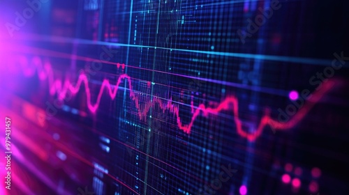 Detailed shot of an electrical waveform graph on a computer screen with complex signal analysis