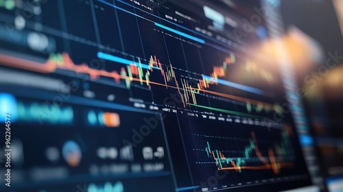 Detailed shot of financial data on a computer screen, including line graphs and performance indicators