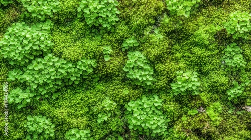 Detailed texture of vibrant green moss growing on the rough bark of a tree.