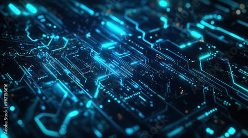 detailed view of a blue glowing circuit board