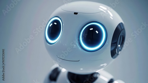 Detailed view of a robot's soft, rounded features and expressive eyes, creating a cute, AI-powered personality, [AI robot], [cute design].