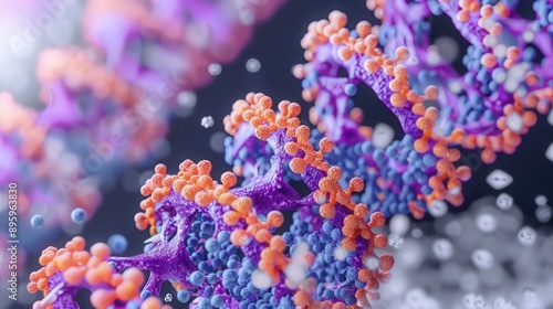 Detailed view of DNA replication, showing how the double helix unwinds and how new nucleotides are added to the growing strand.
