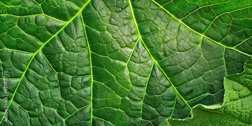 Detailed View of the Leaf Texture with Close-Up of Vascular Patterns on a Vibrant Green Leaf