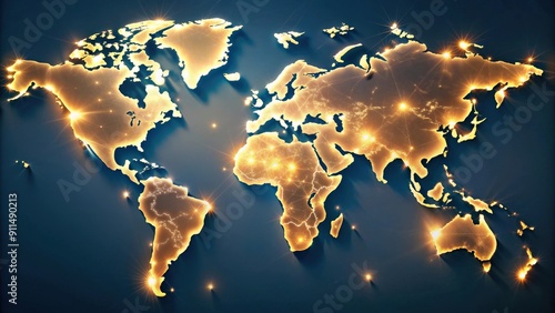 Detailed view of world map illuminated by soft lights, ideal for travel or educational use, world map
