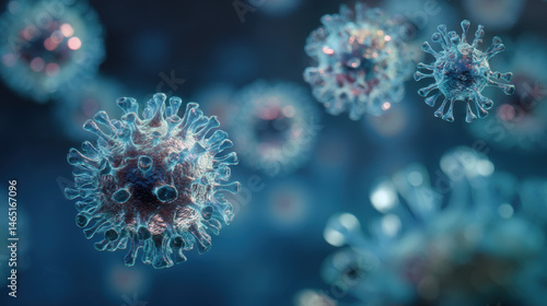 Detailed visualization of virus particles under a microscope in a lab environment during a scientific research session
