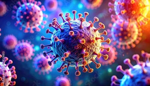 Detailed Visualization of Viruses in a Colorful Microscopic Environment