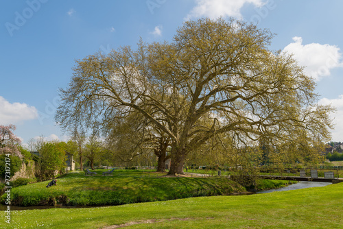 Deux gigantesques platanes centenaires dans un parc de l'Aigle dans l'Orne
