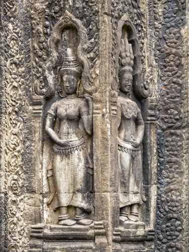 Devatas on the wall of Ta Prohm Temple - Siem Reap, Cambodia
