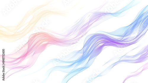 Develop an abstract background featuring wavy lines in pastel colors flowing diagonally, white background