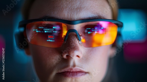 Developer Wearing High-Tech Glasses in Futuristic Office Setting